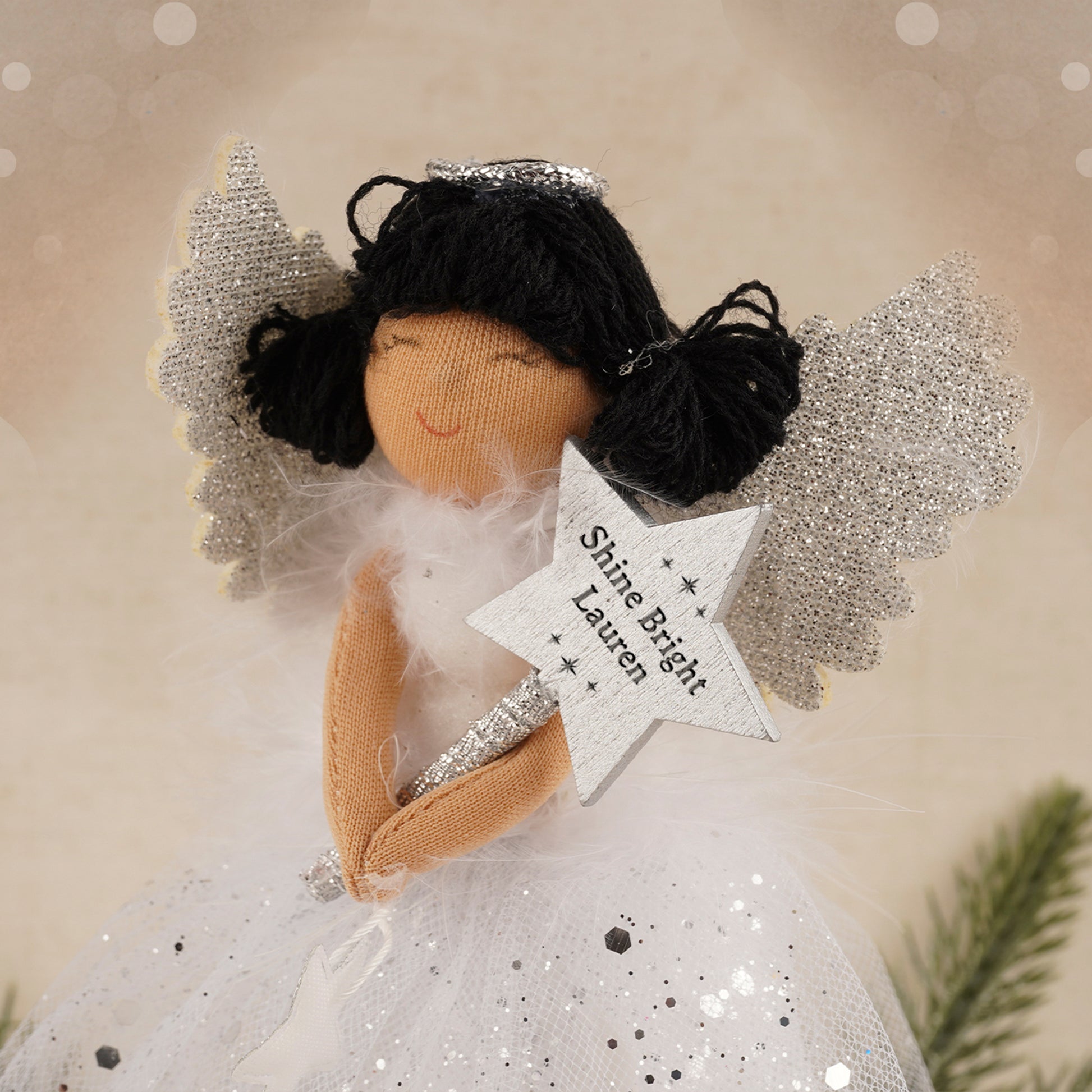 Silver Dark Haired Light Up Tree Topper Angel Decoration | Battery Powered | Size: 18cm | Christmas | Gift For Home