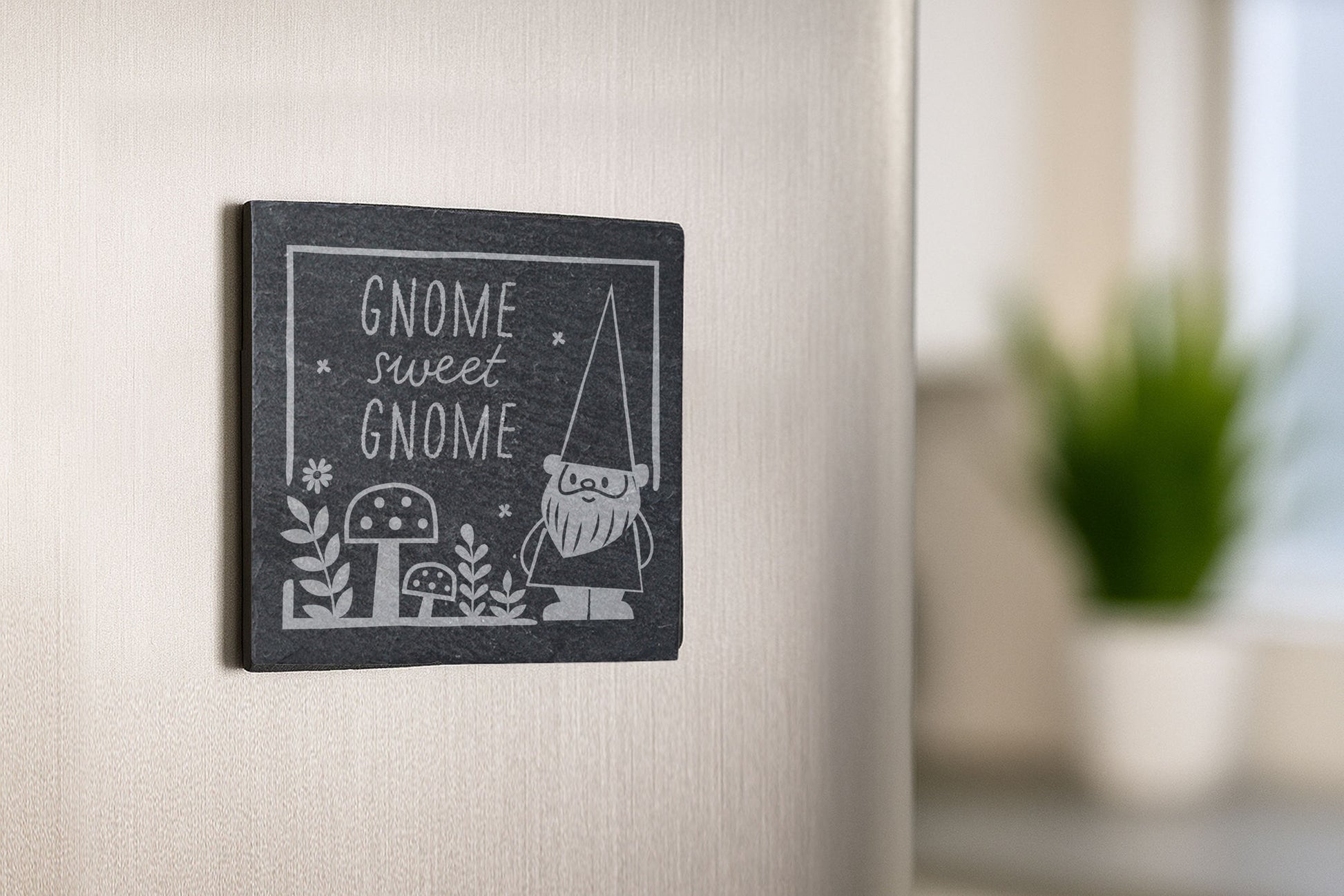 Square Slate Magnet - 'Gnome Sweet Gnome' | Home Decor | Kitchen Decor | Garden Decor