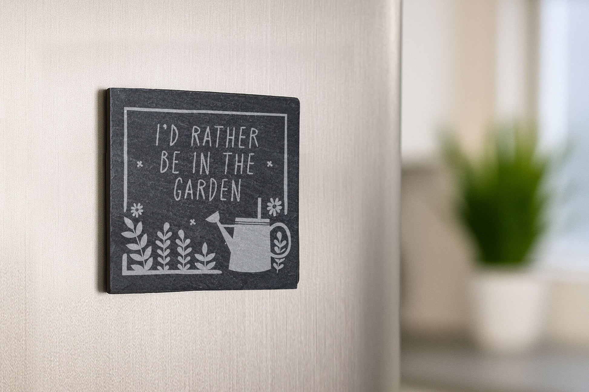 Square Slate Magnet - 'I'd Rather Be In The Garden' | Home Decor | Kitchen Decor | Garden Decor