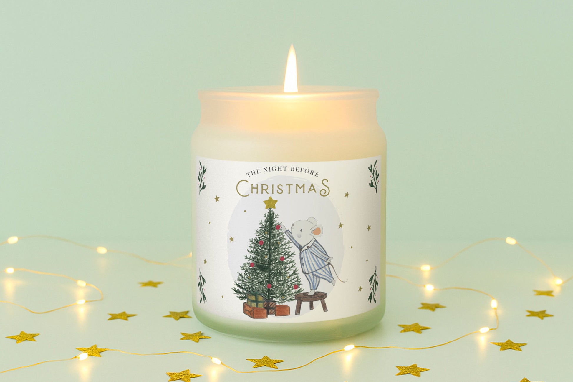🕯️ Candle Size: 9.2cm (H) x 7cm (W) - an elegant frosted glass jar adorned with an adorable illustration of a little mouse in pyjamas beside a Christmas tree, ready for the big night.