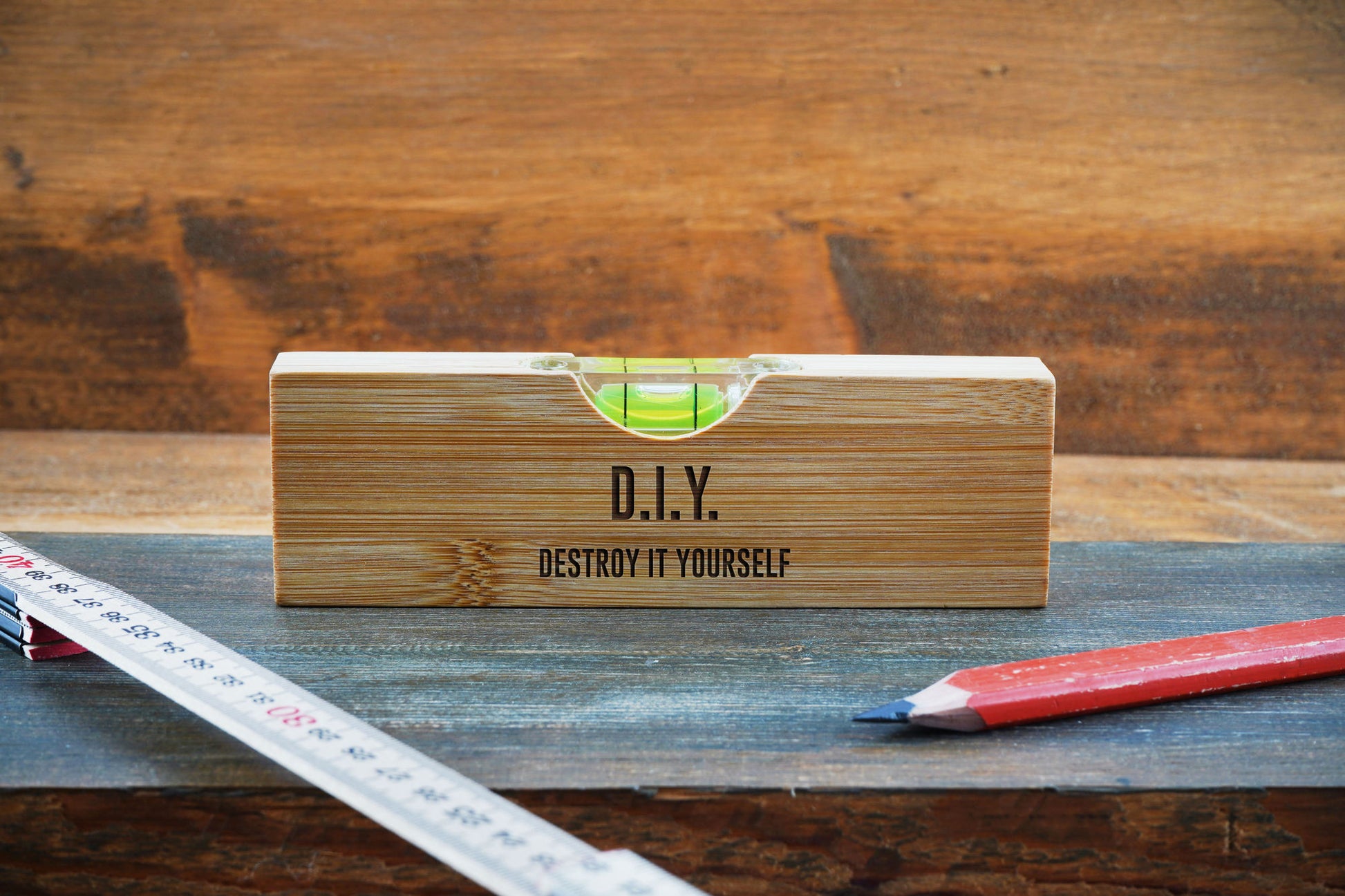 Wooden Spirit Level Bottle Opener 'DIY, Destroy It Yourself | Fathers Day | Gift Box | Engraved Gift | Gift For Him | Gift For Her